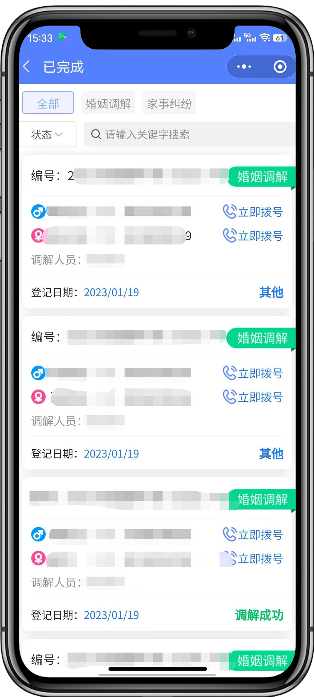 渦陽婚姻家事調(diào)解小程序二維碼?貫徹落實(shí)全國、省關(guān)于做好婚姻家庭糾紛預(yù)防化解工作意見文件精神的一項(xiàng)重要舉措。旨在以建立婚姻家庭糾紛調(diào)解中心為抓手,更好的開展婚姻家庭糾紛調(diào)解工作,達(dá)到預(yù)防化解婚姻家庭糾紛、促進(jìn)家庭和睦、維護(hù)社會(huì)和諧穩(wěn)定的目的。調(diào)解員線上接單調(diào)解婚姻家庭糾紛。