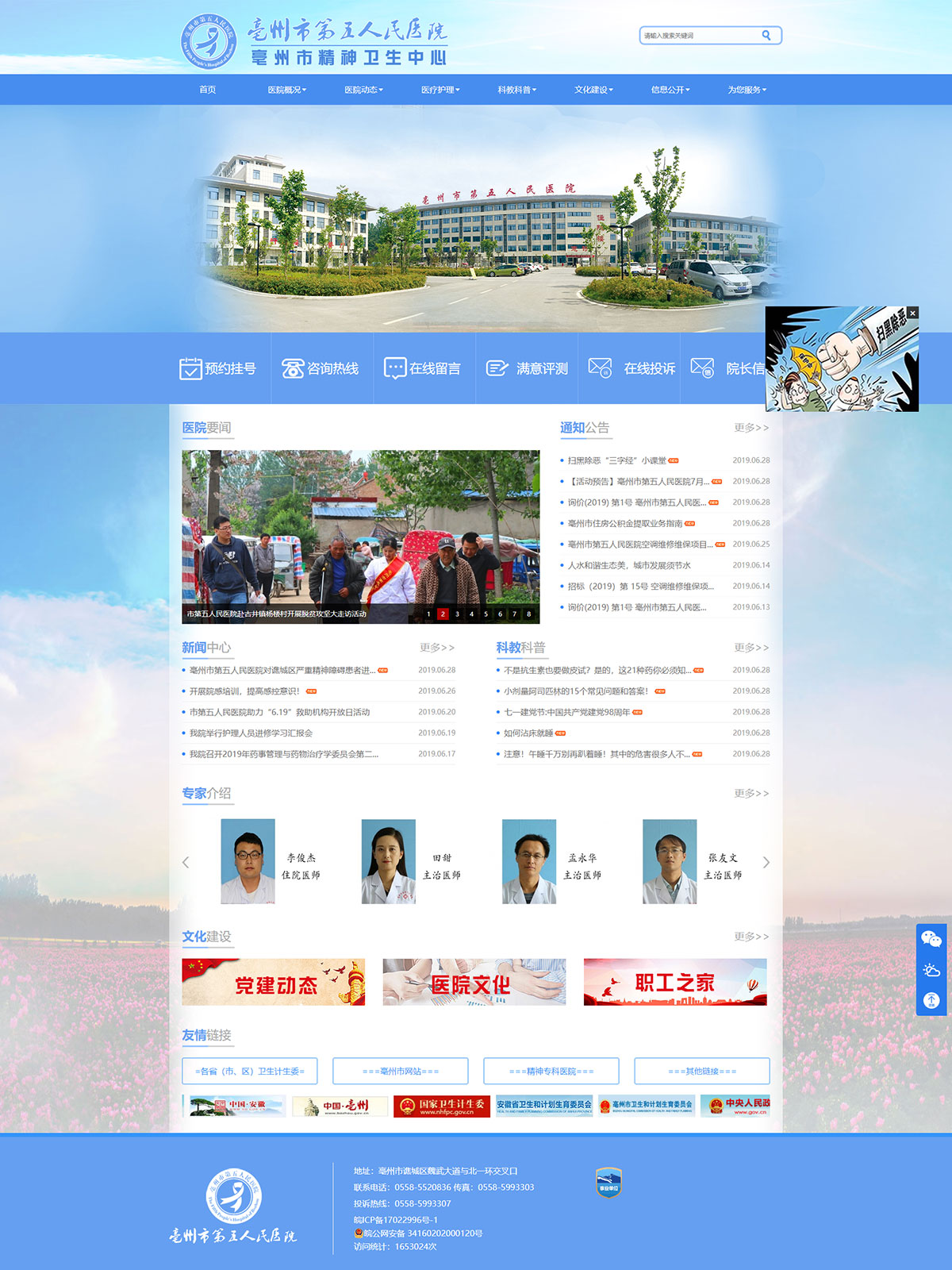 亳州市第五人民醫(yī)院是按照二級精神專科標(biāo)準(zhǔn)設(shè)置的醫(yī)院,也是全市唯一一家精神??乒⑨t(yī)院。醫(yī)院是2011年中央投資項目,項目總投資5100萬元,其中中央投資2700萬元,地方配套2400萬元,選址位于亳州市譙城區(qū)湯陵街道,北一環(huán)北側(cè)、魏武大道延伸段西側(cè)。占地面積30畝,建筑面積2.4萬平方米,設(shè)置床位420張,建設(shè)門診樓4層、住院樓6層、行政樓4層,2013年5月開工建設(shè),2016年5月建成投入使用。